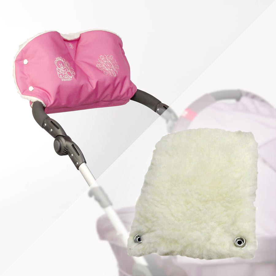 Прихватка на овчине с наполнением из синтепуха на металлических кнопках позволит Вам управлять коляской или санками с ручкой в холодное время года с ощущением тепла.
