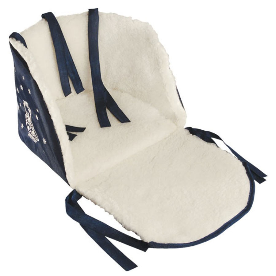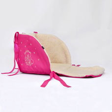 По краю вкладыша вшиты 5 лент, которые позволяют крепко привязать изделие к санкам, качельке или прогулочной коляске.