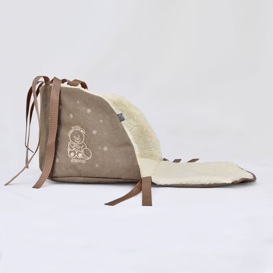 Изделие сделано из натуральной овечьей шерсти, внутри амортизирующий материал благодаря которому путешествие в санках, веселье на качельке станет не только теплым, но и комфортным.