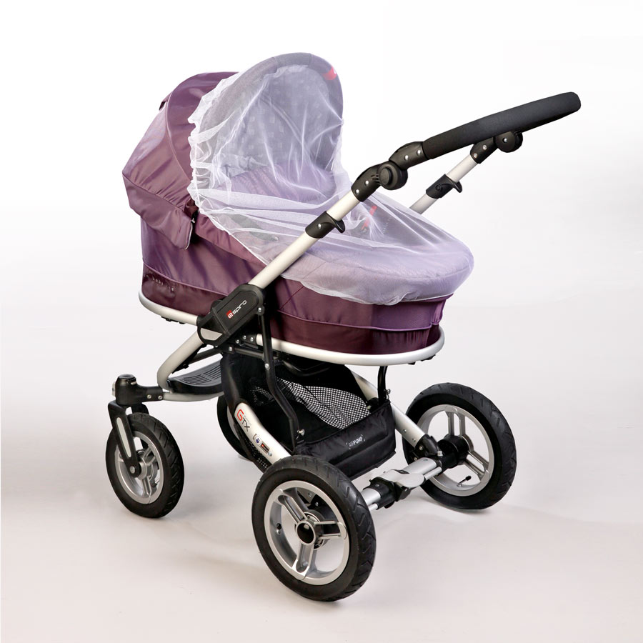 Москитная сетка из немнущегося фатина по бокам обшита специальной резинкой, что позволяет легко надеть изделие на коляску-люльку, кресло-переноску и детское автомобильное кресло безопасности.