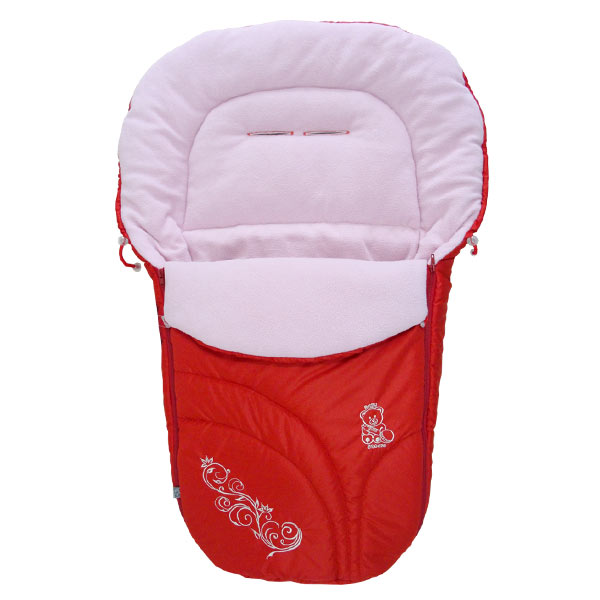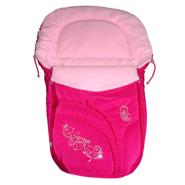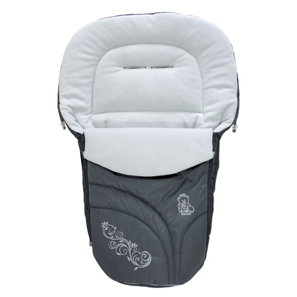 На спинке предусмотрены специальные отверстия для ремней коляски. Удобная конструкция спального мешка и регулируемый капюшон позволит подготовить малыша к прогулке в любую погоду.